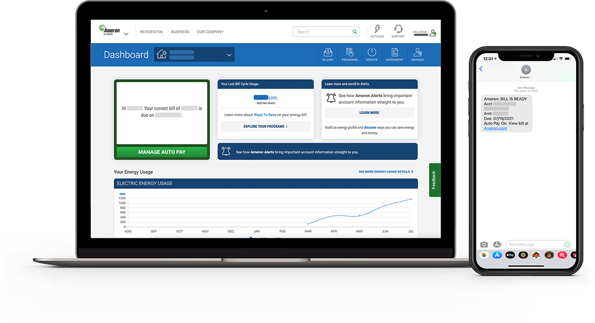 Worried about missing notifications? As backup, you can set up Ameren Alerts to get bill reminders and payment confirmations.